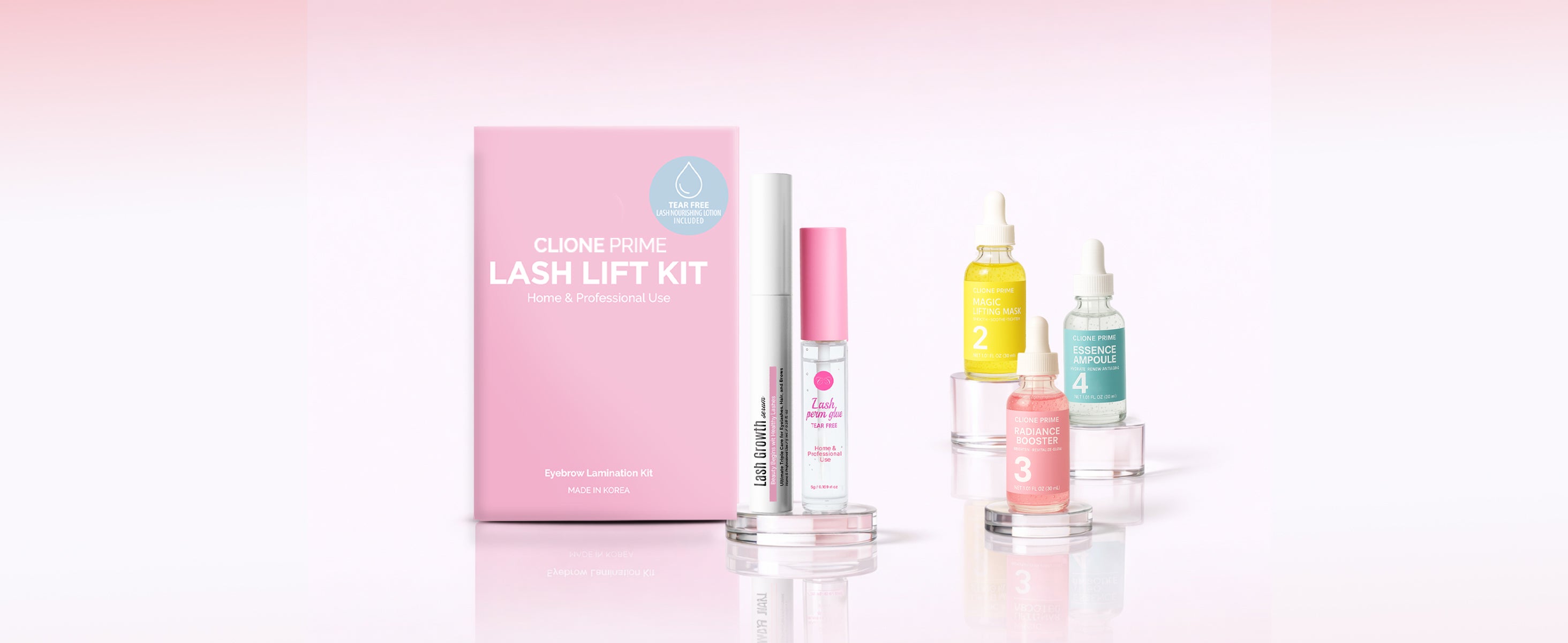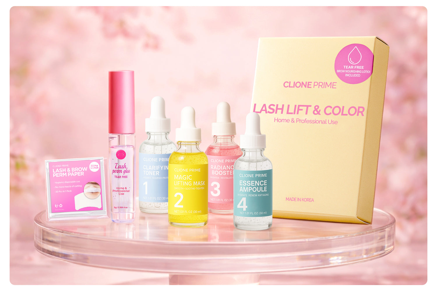 Clione Prime provides professional-quality lash and brow solutions designed for both salons and at-home use. Our range includes gentle lash lift kits for long-lasting curls, easy-to-use brow lamination kits for fuller brows, reliable lash glues trusted by professionals, and safe DIY kits for effortless beauty at home.